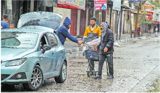 ◥5月6日,人们将物品装上汽车准备撤离加沙地带城市拉法东部地区。