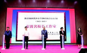 胡淑云、于维涛、邵学伦分别作了讲话,并和李雯、王洪正一起为“安波名校长工作室”揭牌。