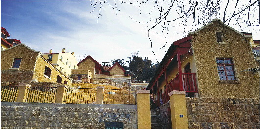 王统照在青岛观海二路的住宅位于观海山山腰,路面铺满黄沙,王统照的小院就从路边向山上延伸。从大门口爬上十几级台阶,就到了第一层,是会客室兼书房;再拾级而上,是三组共十四间房屋,包括卧室、仓库、厨房等。