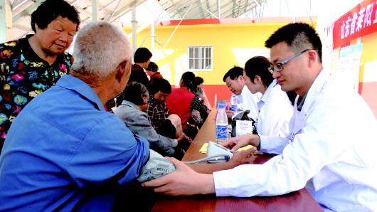 山东省莱阳卫生学校医院送医到乡村。