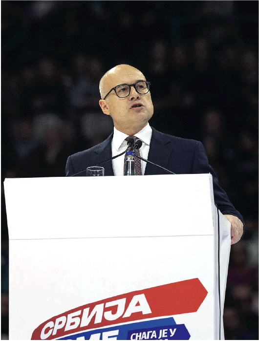 这是2023年12月2日武切维奇在贝尔格莱德举行的塞尔维亚前进党集会上讲话。 新华/路透