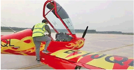 翼龙通航公司的飞机准备起飞,对济南城区进行三维影像采集。