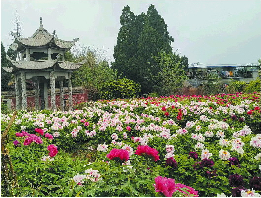 走进大门,朱红匾额上书“何氏宗祠”四个金字,为当代书法家启功所题。院内迎面照壁青砖青瓦、古色古香,南面镶嵌着行书牡丹诗七律一首:“廿年梦想故园花,今到开时始到家。几许新名添旧谱,因多旧种变新芽。摇风百态娇无定,坠露丛芳影乱斜。为语东皇留醉客,好教晴日护丹霞。”此诗为曾任明代工部尚书的凝香园第二代主人何应瑞所写。何应瑞一度辞官返乡,他在观赏牡丹时有感而发,诗中描绘了凝香园牡丹之美,何应瑞借物言志,直抒胸臆。