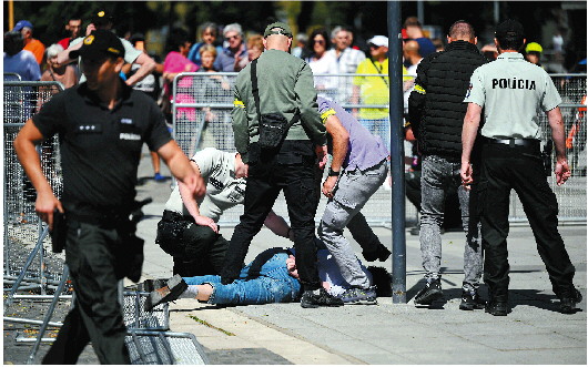 流传于社交媒体“电报”的一段视频显示,袭击者戴着手铐,说他不赞同菲佐政府的政策,包括媒体改革。