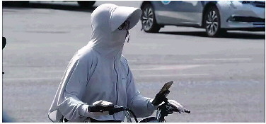 最近几天济南的天气可谓是“热辣滚烫”。随着高温天气到来,不少市民早已“全副武装”,从头到脚包裹得严严实实,防晒口罩、防晒衣、遮阳帽变成了大家日常出门的“战袍”。