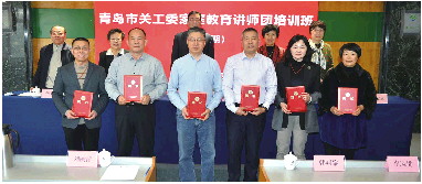 ▲青岛市关工委举办关工委家庭教育讲师团(第二期)培训班,并向讲师团成员颁发聘书。
