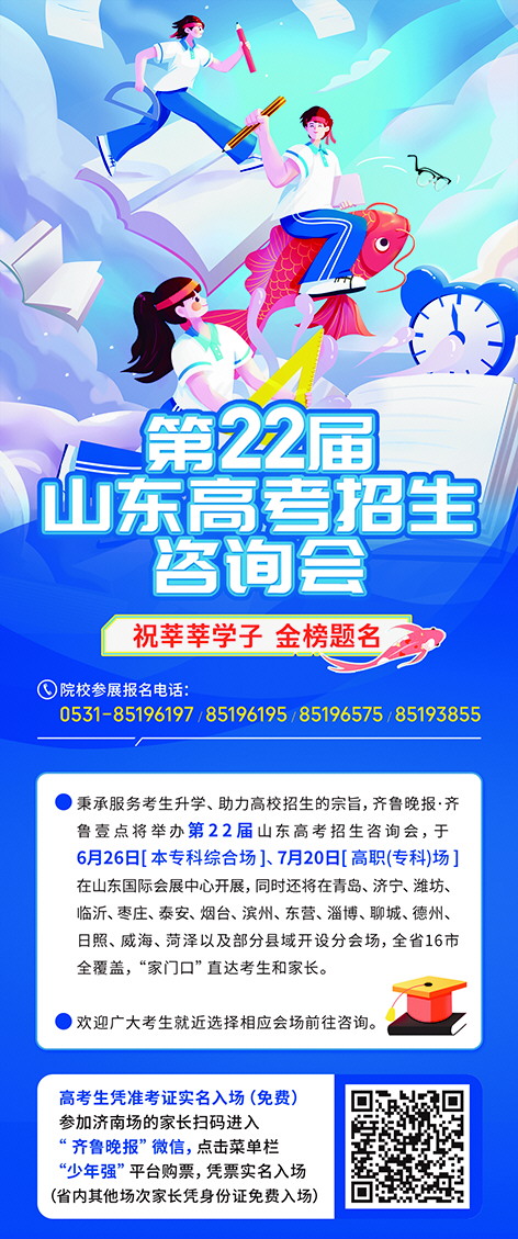 关于山东高考招生咨询会的详细信息,高校和考生都可关注收藏“少年强”小程序了解最新资讯;也可以下载齐鲁壹点App,在教育/大学频道关注最新消息。