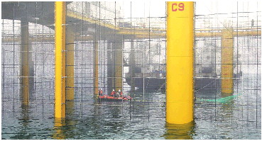 生长于“财金海上粮仓壹号”首座网箱的20万尾三文鱼进入收获期。