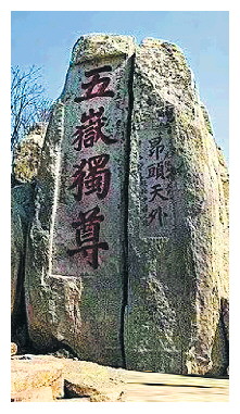 挑山工走得似乎不快,却一直遥遥领先,扁担的两头各是几十块红砖,颤颤悠悠,节奏明快、有力。他个头不高,身体也清瘦,但一股向上的力,仿佛涌动不辍,压不倒,扭不曲。“润物细无声”,落后者加快了脚步,洗耳恭听,山泉“咚咚”声不绝入耳,又掺和着低沉的“咕咕”声,似乎从山中溢出。环顾四周,干涸无泉。一行人上至平坦处,“咚咚”与“咕咕”的协和音陡然而止。此盘云梯两侧,石栏半人高,青石砌成。我窃自揣测,脚踏石声,不能外传,逗留狭窄处,共振共鸣。举步云梯,此盘亦有石栏,只是愈加峭拔,斜坡成七八十度。静心倾听,每一投足都发出“咚咚”与“咕咕”的协和音。当今,无一乐器能奏鸣啊!正是特殊意境中的乐音。左侧一巨大青石,独占鳌头,仅小处与群岩粘连,大部悬挂于苍穹,造成千钧一发之势,似乎略一落脚,就将石崩山裂。