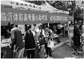 在临沭一中考点,临沂体彩联合团县委参加了高考爱心助考志愿活动。团县委参加本次活动的志愿者都是今年刚参加工作的选调生。他们大多数从国内名牌高校毕业,有的还有留学经历。曾经留学英国的选调生小徐说:“我们经历过高考、国外留学、选调生选拔等经历,我们想利用所了解的一些知识,为学弟学妹和家长们提供一点‘导航’服务。”