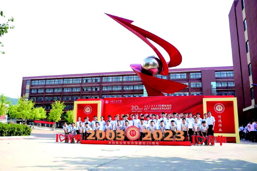 2023年烟台青华中学建校20周年之际,师生合影留念。