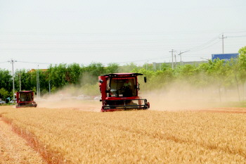 “我们吴家湾强村公司共流转土地880余亩土地,通过规模化种植、科学化管理,小麦长势良好、产量稳定,近日小麦已经成熟,开始收割,预计亩产量1100斤以上,我们组织4台小麦收割机,计划两天全部割完。”吴家湾村党支部书记朱峰说。