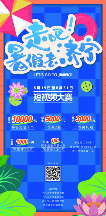 为进一步吸引海内外游客暑期来济宁旅游打卡,更大力度地宣传济宁丰厚卓越的文化旅游资源和文化“两创”新成果,让更多游客特别是在校大中小学生认识济宁、了解济宁,畅享济宁旅行的欢乐体验,从而影响带动更多人到济宁旅游度假,中共济宁市委宣传部、中共济宁市委网信办、市文化和旅游局、济宁孔子文旅集团19日联合启动“走吧!暑假去济宁”短视频大赛,通过新媒体的形式让更多人了解并走进这座城市。19日起,将面向社会公开征集优秀原创短视频作品,立体呈现“孔孟之乡、运河之都、文化济宁”的独特魅力。