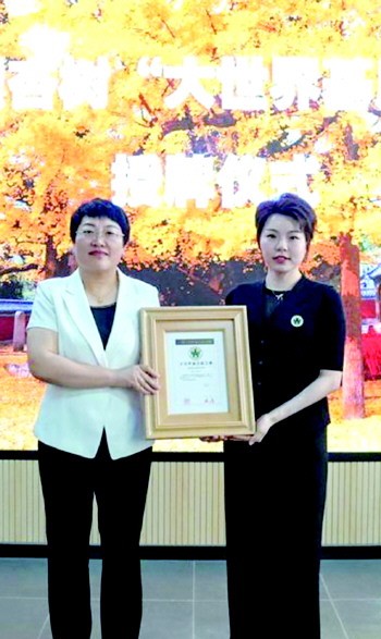 上海大世界基尼斯总部有限公司常务副总经理高文为莒县银杏树正式授牌,这棵古老的树木再添新的身份。“很高兴能来到莒县,见证这个重要时刻,银杏树非常壮观,也希望有更多的游客能来游览。”高文说。