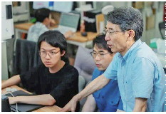 ◤薛其坤指导学生做实验。