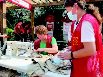 京杭佳苑社区公益岗人员免费为居民修改衣服。