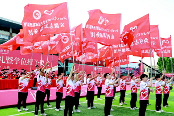 6月13日,聊城大学2024届学生毕业典礼暨学位授予仪式于东校区田径场举行。校党委领导班子全体成员出席仪式并为西部计划志愿者颁发荣誉证书,260名西部计划志愿者宣誓出征。