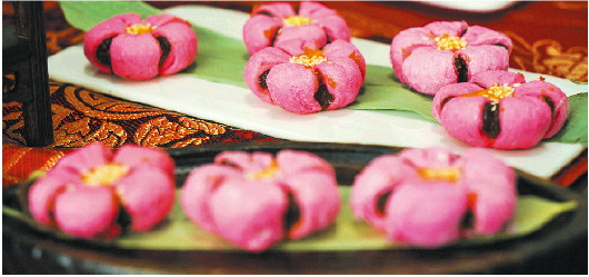 说话间,孔祥昆掰开一块刚出炉的枣花酥,软糯香甜的枣泥与层层叠叠的酥皮相融,糕点自带的香气扑鼻而来。“枣花酥和枣煎饼一样都属于外用糕点,而像绿豆糕、水晶包等应时糕点也很受大家欢迎,以绿豆糕为例,我们要将绿豆煮后去皮,再配上各种解暑清凉的佐料,用水果形状的特制模型制作而成。”孔祥昆解释,孔府糕点讲究时令性,根据季节变化调整造型和用料,同时注重鲜度,现烤现吃,使用真材实料。“这种纯手工制作出来的口感,是机器操作代替不了的,而这也是古法传承留在舌尖上的味道。”孔祥昆笑着说。
