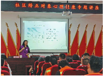 讲座中,周静讲师主要从正心、正念、正言、正形四个方面,讲述保持心理健康的方法。通过通俗易懂,案例分析和互动交流等多种形式、深入剖析了社区矫正对象可能面临的心理问题和压力源,引导他们学会如何应对负面情绪,培养积极乐观的心态。
