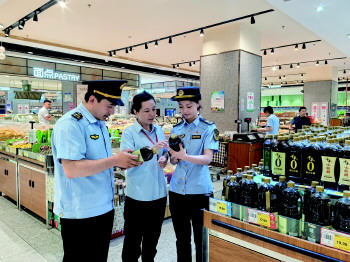 兖州区市场监督管理局翼虎青年突击队队员在食品安全监管一线监督执法。