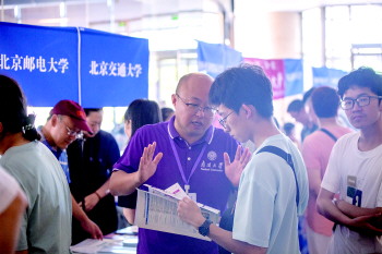 家长与学生为高招会点赞 “志愿填得好,胜过考分高”。填志愿,是人生关键抉择之一。高招会现场,学生和家长都忙着为填志愿做准备。
