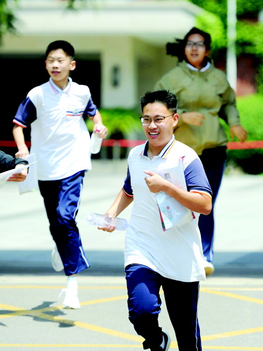2024年济南中考结束,考生兴奋地跑出考场。