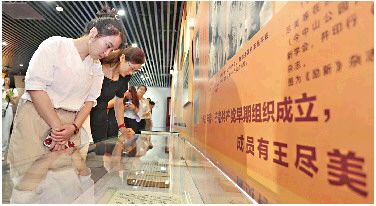 6月28日,党员代表在位于山东省委党校内的“四五党性教育基地”参观。