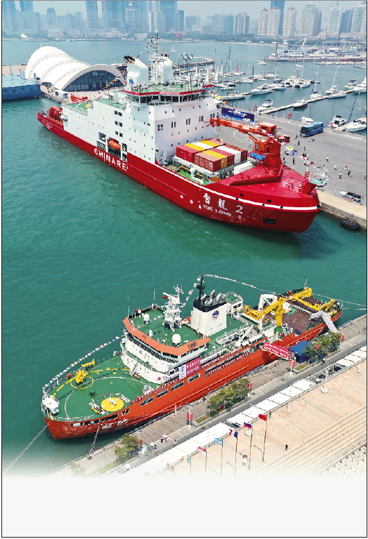 “极地”号是由我国自主设计、自主建造的新一代破冰调查船,于6月24日正式命名交付后首次面向公众开放参观。“雪龙2”号是全球第一艘采用船艏、船艉双向破冰技术的极地科考破冰船。该船于2019年首次参与中国极地考察,并于今年4月顺利完成中国第40次南极考察任务。 新华社发