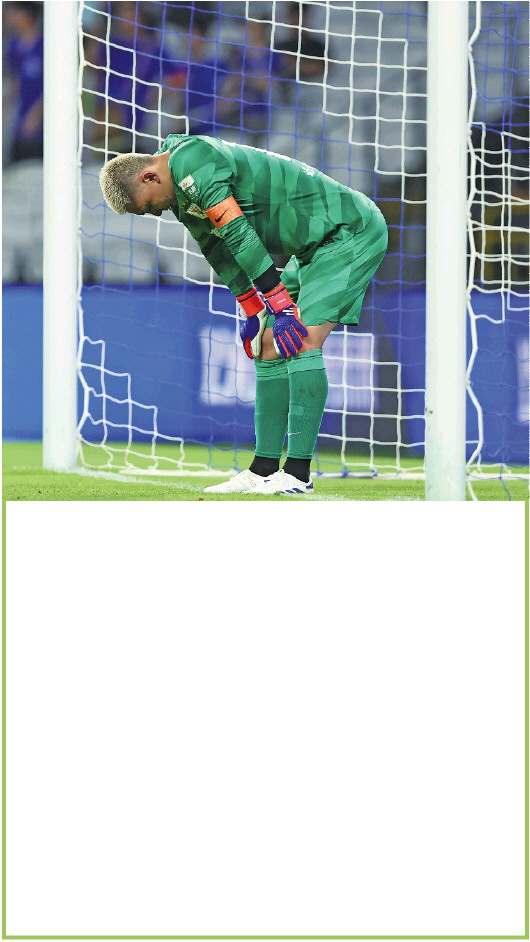在与申花队的比赛中连失六球,守门员王大雷十分沮丧。 Ic photo 供图