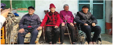 刘志广老人(右一)和兄弟姊妹的合影,他的大妹妹99岁,二妹妹96岁,三弟94岁,四个老人平均年龄97岁。