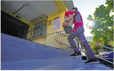 6月24日,栾玉帅在北京市海淀区一小区派送快递。 新华社发