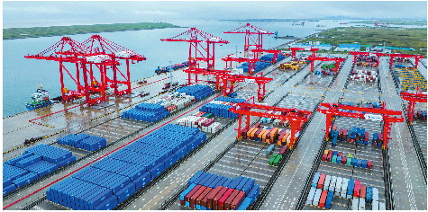 沿海港口握指成拳,“江苏出海新通道”拔锚起航。2023年,南通港货物吞吐量超3.4亿吨,位列全国主要沿海港口第14位。至2035年,通州湾新出海口将全面建成通道运输能力强、枢纽布局合理、江海联运便捷,物流服务和通关效率达到国际一流水平的新出海口。