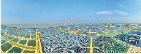 盛夏的南通海岸线上,上百台风车擎天而立、吸风吐电,不远处“渔光一体”项目建设基地里,深蓝色光伏板鳞次栉比。而这些“绿电”能源正通过电网,源源不断地输送到岸上的储能站。