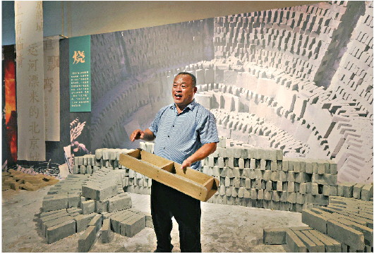 临清贡砖烧制技艺传承人在现场展示部分技艺流程。 恭王府博物馆供图