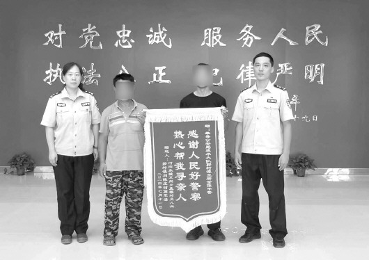 2024年7月11日中午,在民警的安排下,经确认来人正是葛某某要寻多年的亲人,两人在派出所相认。为表达感激之情,葛孟两人给派出所送来一面“感谢人民好警察,热心帮我寻亲人”的锦旗。