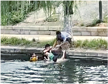 骑出五六米后,任磊不放心地回头看了一眼,结果岸上的黄衣男童也掉进水里。“我估计岸上的男童是想下水救朋友。”见情况不对,任磊赶紧停下车,脱了上衣就往河边跑,“大概十秒后,我跳进河里,向两个孩子身边游。”