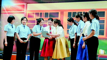 教师们表演情景剧《奉献》。