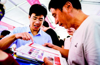 “我看这个汽修类的专业挺不错,这个船舶类的也可以。”高招会现场,王大哥一家在阴凉里席地而坐,他们咨询了几家心仪的院校,对专业、院校有了更多认知。“儿子今年考了300多分,我希望他能报考机械类工程类的专业,好好学门技术,将来毕业了也好找工作。”王大哥说,今天他把上小学的女儿也带来了,让孩子提前感受感受高招会的氛围。“没想到人气这么火爆。”王大哥说。