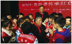 枣庄市市中区“五老”王金国向青少年讲述铁道游击队的抗日故事。
