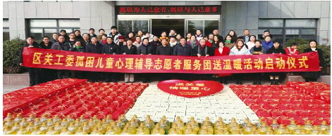 枣庄市市中区关工委孤困儿童心理辅导志愿者服务团开展送温暖活动。