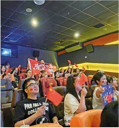 7月30日,观众在电影院给中国乒乓球混双“莎头”组合加油。 博主“做电影的连城易脆”供图