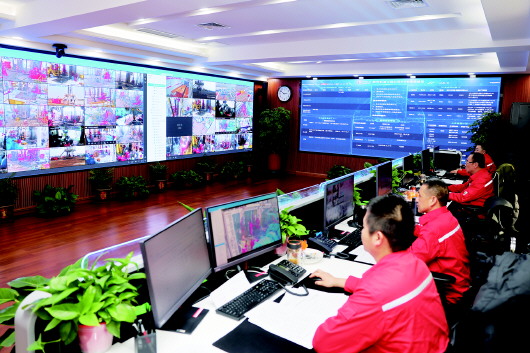 胜利石油工程公司HSE督查支队通过视频监控系统对作业人员违章、设备设施隐患及时发现、实时交流、立即处置、安全化解。 通讯员 张玉 摄