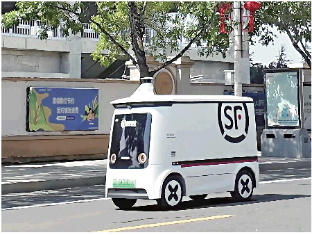 一辆正式上路运行的顺丰快递无人车。
