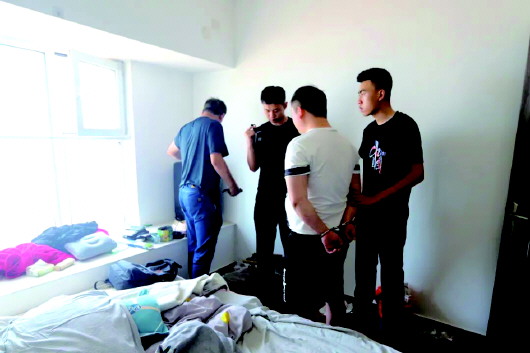 海阳警方在出租房内当场抓获犯罪嫌疑人。