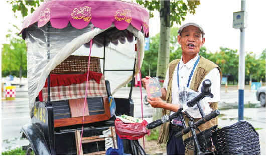 “坐车吗,老师?”“坐三轮去‘三孔’感受一下吗……”早上不到8点钟,孙光喜来到曲阜市游客中心北门西侧的人力客运三轮车专用停放区,身旁的同行开始招揽游客,此时的孙光喜十分安静。只见他边将凉席铺在车座上,边从车筐中拿出一本《论语》准备细读。“休息的时候,看看《论语》复习复习。”