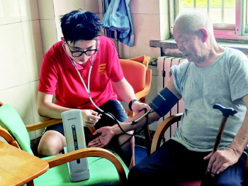 情暖桑榆,老年服务。志愿服务队先后到区人民医院、九如城康养中心开展公益义诊活动,在区人民医院,服务队成员们迅速融入角色,与医院人员紧密协同配合为患者提供温馨、专业的服务;在九如城康养中心,成员分组协作,为老人们测量血压、血糖,提供专业的健康咨询与建议。通过此次实践,大学生志愿者不仅收获了专业知识与技能的提升,更用实际行动诠释了尊老爱幼的深刻内涵。