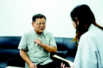 杨义堂正在接受采访。