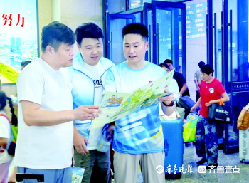 暑假期间,日照夏日海滨旅游持续升温,各大景区、车站都聚满了来自五湖四海的游客。喜迎八方来客,身穿蓝马甲的“小太阳”青年志愿者们在各大景区、高铁站、机场等重点场所,用热情的服务、真诚的微笑,展现出最绚烂的青春服务风采,给游客们送去丝丝清凉。