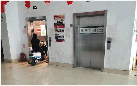 “现在我们小区内非学校教职工的普通业主,只有西门能进出。”张先生说,西门的电梯本来是只供行人进出的,但由于电动车没有其他路可以进小区,只能和行人一起挤电梯。尤其是上下班高峰期,电动车得排队才能进电梯。