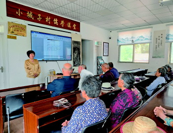 钱玉珍正在小城子村的儒学讲堂授课。